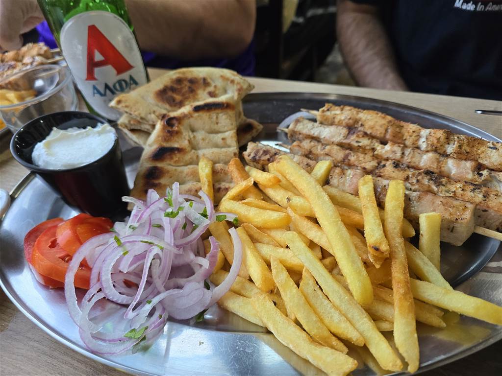 הנסיעה לעיר העתיקה התיירותית אורכת כחצי שעה, ולנו יש מחוץ לשדה רק שעתיים, ולכן החלטתי לוותר על האטרקציות האמיתיות של רודוס ולהסתפק במסעדה מקומית במרחק הליכה מהשדה (או מרחק נסיעה קצר מאוד).