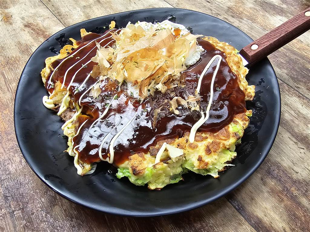 אנחנו באנו לאכול אוכל קריבי, אבל חלק מבני המשפחה קצת נרתעים מהמסעדה שחשבתי עליה ובה עומדת על הסירים "מאמא" גדולה, ואנחנו מחליטים לשבת במסעדה היפנית הידועה OKAN שיש לה סניפים נוספים, ולטעום סופסוף את הכוכב של התפריט – Okonomiyaki – סוג של פנקייק כרוב (כן!) עמוס בכל טוב.