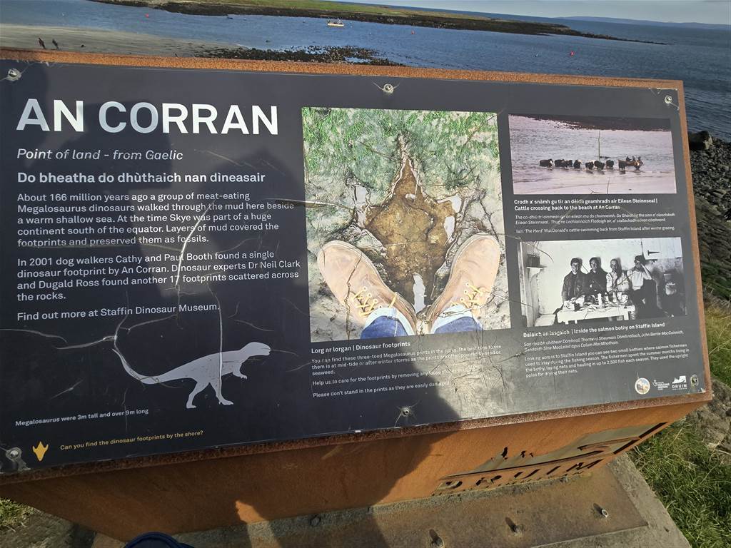 ב 2001 התגלו העקבות הראשונים ומומחים בתחומים איתרו עוד 17 עקבות כאלה בין הסלעים בחוף אליו נסענו. הכל מתועד במוזיאון דינוזאורים מיוחד פה בסקאי, בעיר Staffin, לא רחוק מהחוף.