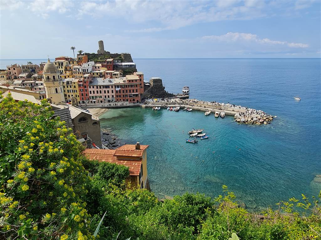 אנחנו מטפסים עד לשיאו של המסלול ומתחילים לרדת, והנה נשקף אלינו הכפר ורנצה… כמה יפה!