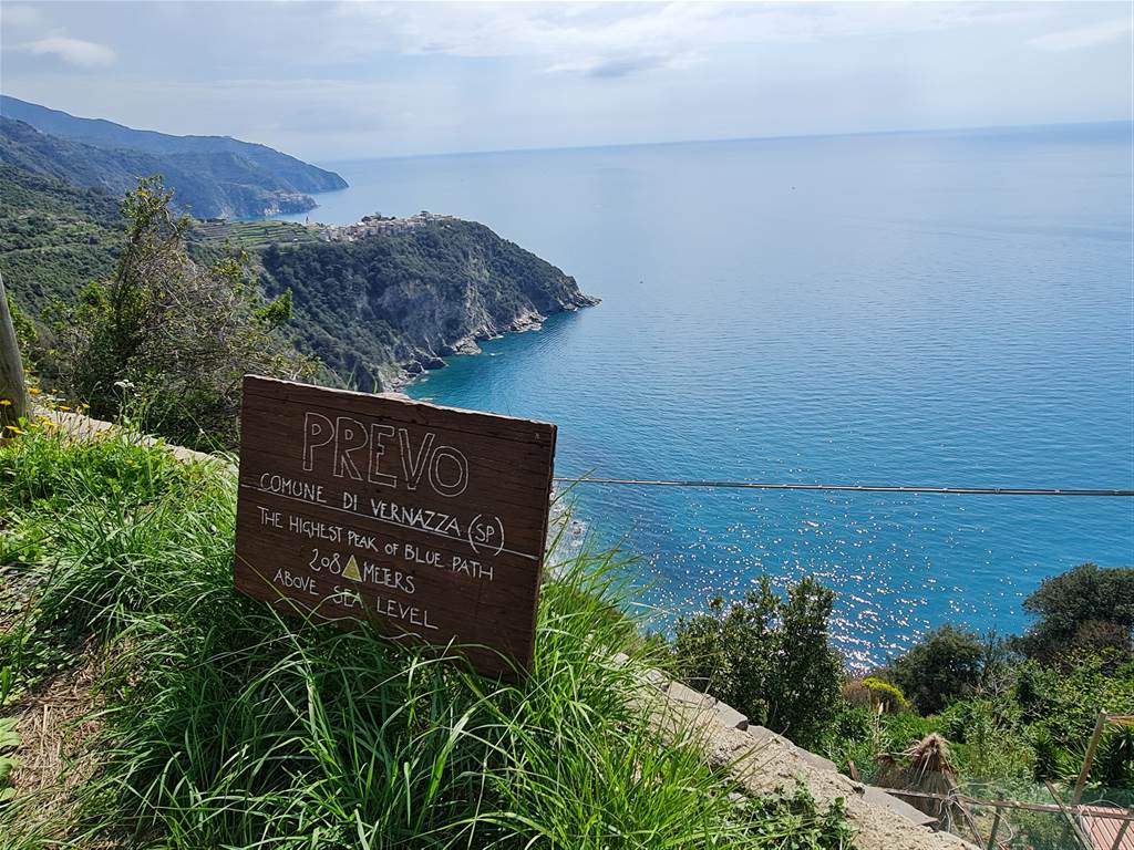 אם תמשיכו עוד כמה מטרים, תגיעו למרפסת די גדולה, צופה אל הנוף הנפרש במה שמוגדר "הנקודה הגבוהה ביותר בשביל הצ'ינקווה טרה" (ראו בשלט שבתמונה). שילחו נציג לבר שיביא לכם פינוקים…ושבו לכם בכיף.