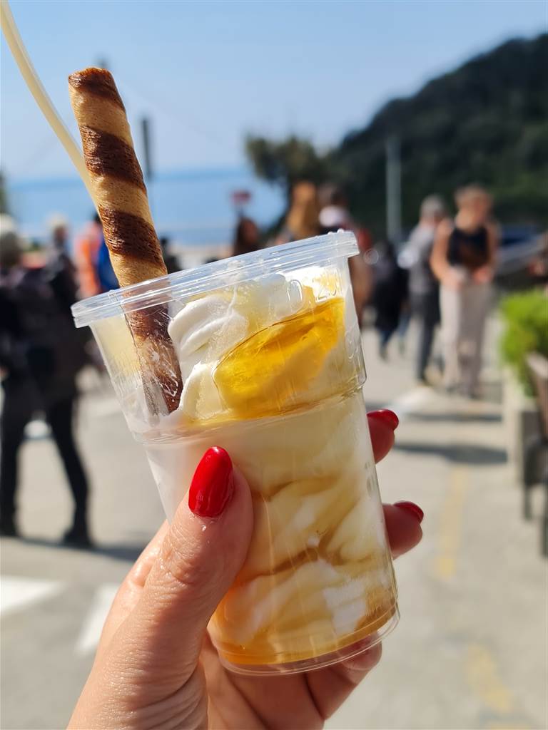 אחרי ההפסקה הזו המשכנו לכפר הבא Corniglia , שם כולם יושבים במרכז הכפר ומלקקים להם גלידה.. או ככה זה נראה לפחות! אני ממליצה על Alberto Gelateria, ג'לטריה שקצת נחבאת בין הכלים ברחוב הראשי אבל היא אוצר אמיתי! כדאי לטעום את גלידת הבזיליקום-לימון (כן!) ואת הפרוזן יוגורט המקומי שהוא פשוט יוגורט מדהים בטעמו, הזכיר לי את הטעמים של יוגורט יווני אמיתי, משולב בלימון ובדבש מקומי .