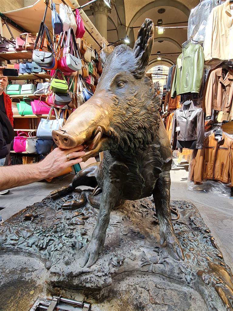 אנחנו חיפאים אז מפגש עם חזירים אינו בגדר אירוע מיוחד עבורנו, אבל ההבטחה המקומית היא שמי שישפשף את אפו של החזיר, ועוד יותר אם יניח מטבע בפה החזיר והוא יפול מפיו ישר מטה – מובטח לו שיחזור פעם נוספת לפירנצה!