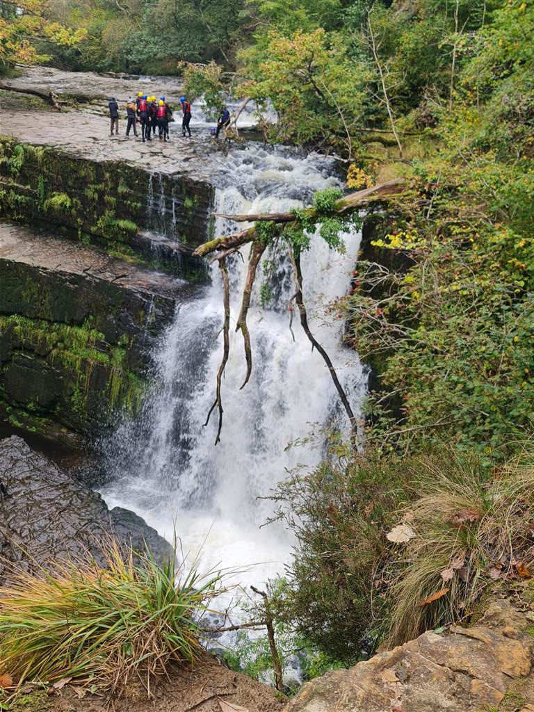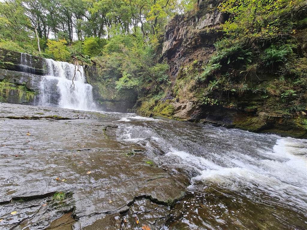 אנחנו מגיעים למפל הקרוב ביותר שנקרא Sgwd Clun-gwyn (המילה Sgwd פירושה מפל).