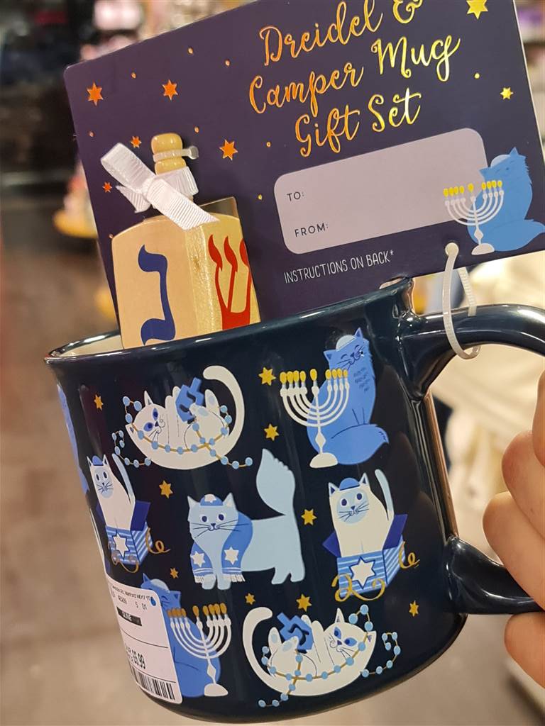 שם מצאנו את האייטם הבא מוכן לחנוכה, ואם חתול עם כיפה וטלית עושה לכם את זה אתם יודעים לאיפה לגשת. (וגם כמנהג הגולה סביבון "נס גדול היה שם" על הדרך)