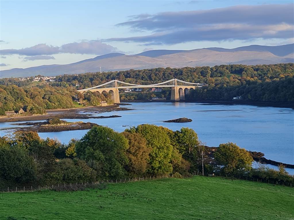 אל האי מחברים שני גשרים, הנה הנוף מגשר מנאי Menai Suspension Bridge