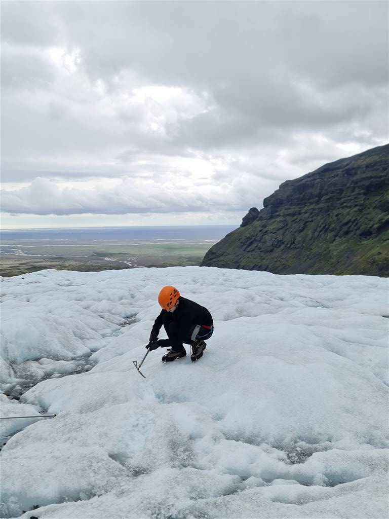 טשה הראתה לנו (בזהירות) איך היא מרסקת בסופר-גרזן שלה מערת קרח, (אנחנו זכינו להצטייד בגרזן קטן בלבד שעוזר ליציבות בעליות)