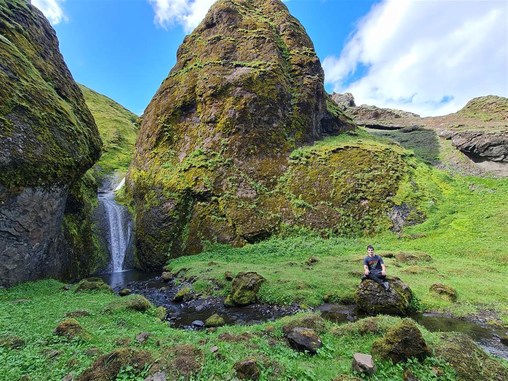 את הבוקר התחלנו במפל "על הדרך" – מפל Kvernufoss שנמצא סמוך מאוד למפל Skogafoss שכבר ביקרנו בו לפני מספר ימים, אבל אז בהיותנו ספוגי מים לא ממש חיפשנו אתרים נוספים…אז עכשיו באנו להשלים, הוא קרוב מאוד למגורים הנוכחיים שלנו.
