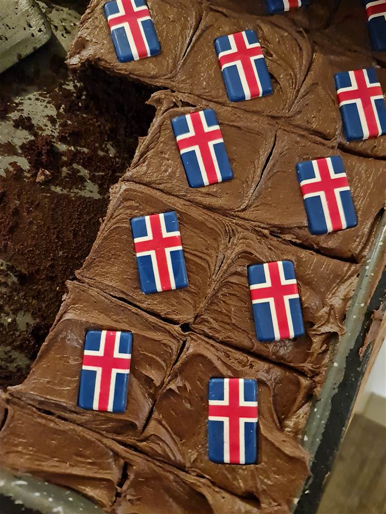 בעלת הגסט האוז שלנו נוהגת להשאיר לאורחים עוגה ביתית חופשי-חופשי, כשהגענו מצאנו עוגה חדשה, מקושטת בדגלי איסלנד.. הייתי רוצה להגיד שלא התפתינו