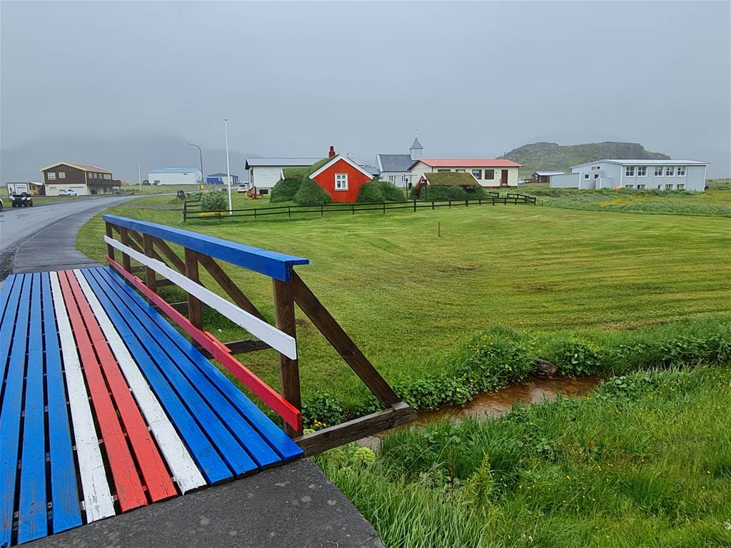 נראה שהכפר הכין עצמו לתיירים.. תראו את הצביעה בצבעי איסלנד, ממש סמוך לבית הדשא
