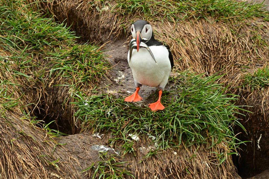 כל ההר חפור בבורות לגוזלים, הפאפין עף לים, וחוזר בתעופה מהירה מאוד ישירות לבור האישי שלו!
