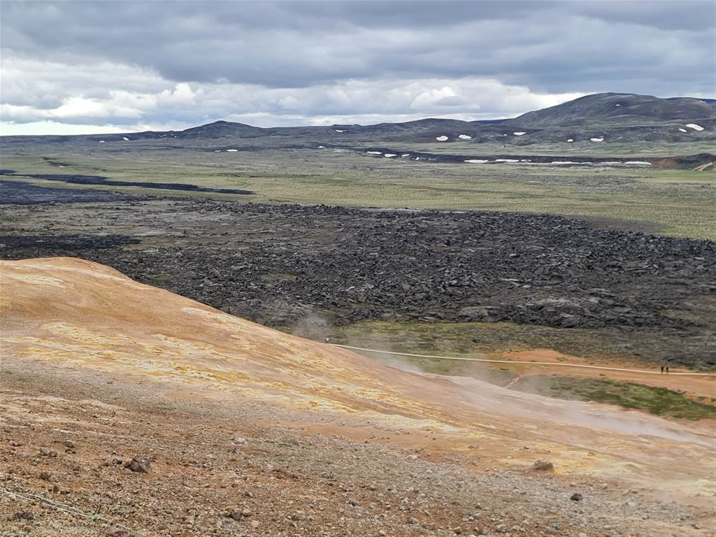 ובכן בחרתי להתחיל את היום במסלול בשדה לבה Leirhnjukur – מסלול מעגלי של כמעט 5 ק"מ, עם 100 מ' שינוי גובה. המסלול נמצא ב ALLTRAILS בשם Leirhnjúkur Lava Field