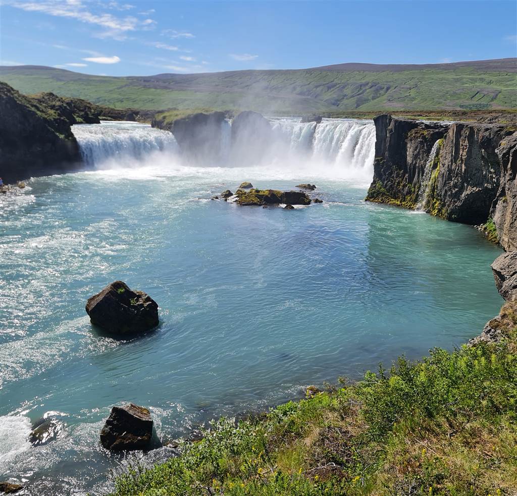 אנחנו פותחים את היום במפל מהמפורסמים באיסלנד, נמצא קרוב מאוד לכביש הטבעת ולכן גם הוא פופולרי בקרב אוטובוסי התיירים – זהו מפל האלים או בשמו האיסלנדי Godafoss