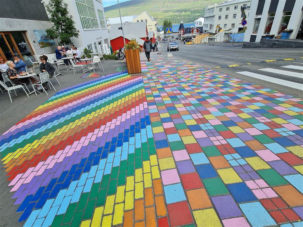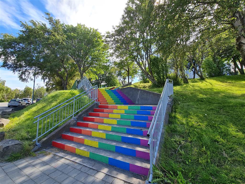 מדרגות צבעי הקשת Regnbogastiginn (ממש בסמוך לכנסיה המפורסמת של העיר)