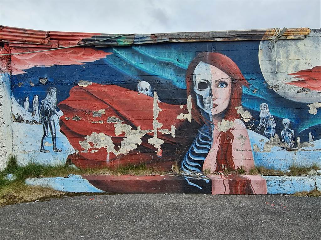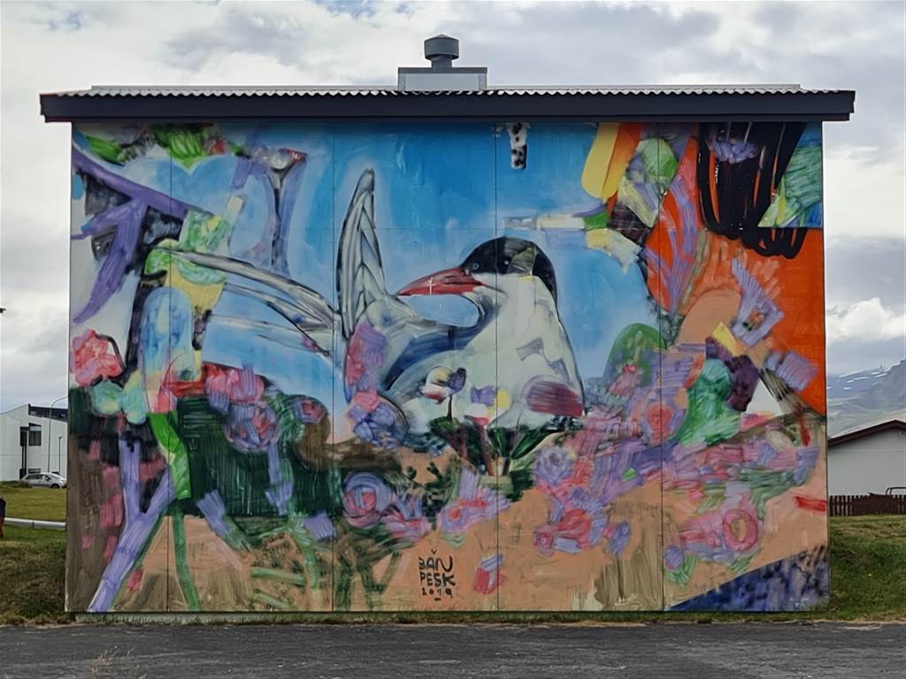 אנחנו נוסעים מערבה בכביש הצפוני של סנייפלסנס, יעדנו הראשון הוא דווקא מקבץ ציורי קיר בעיר Hellissandur (בגוגל מפס – Murals of Hellissandur). משום מה Hellissandur מחשיבה עצמה כ"בירת ציורי הקיר של איסלנד" למרות שאין לי ספק שבריקיאוויק יש הרבה יותר…