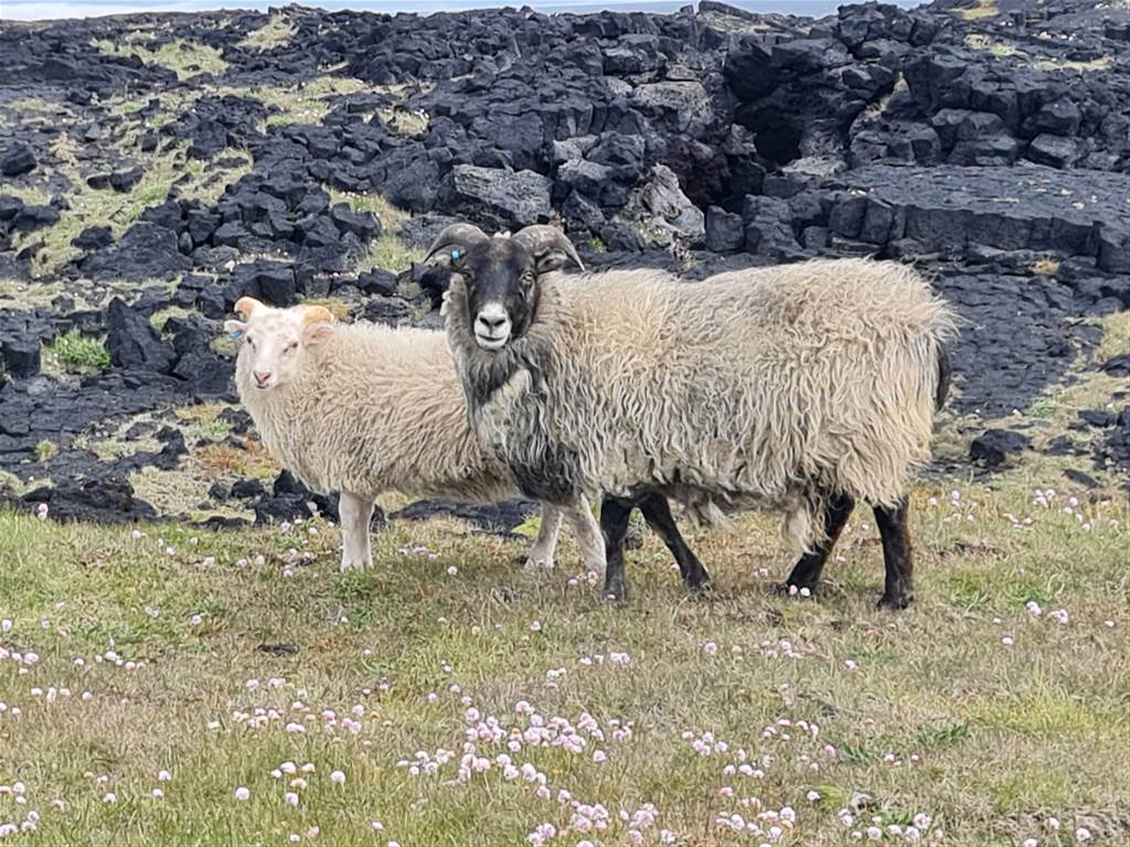הדרך עוברת לה בין שדות לבה, ולפתע אנחנו מבחינים בכבשים מטיילות להן.. מחזה קצת סוריאליסטי.