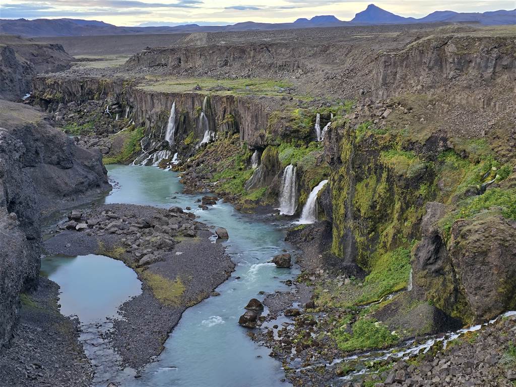 אנחנו מגיעים לעמק הדמעות Sigöldugljúfur, מקום מקסים שקצת איכזב אותנו בשנה שעברה עם מים שלא בצבע טורקיז.. אבל השנה יפה יותר. אפשר לקרוא גם פה עליו.
