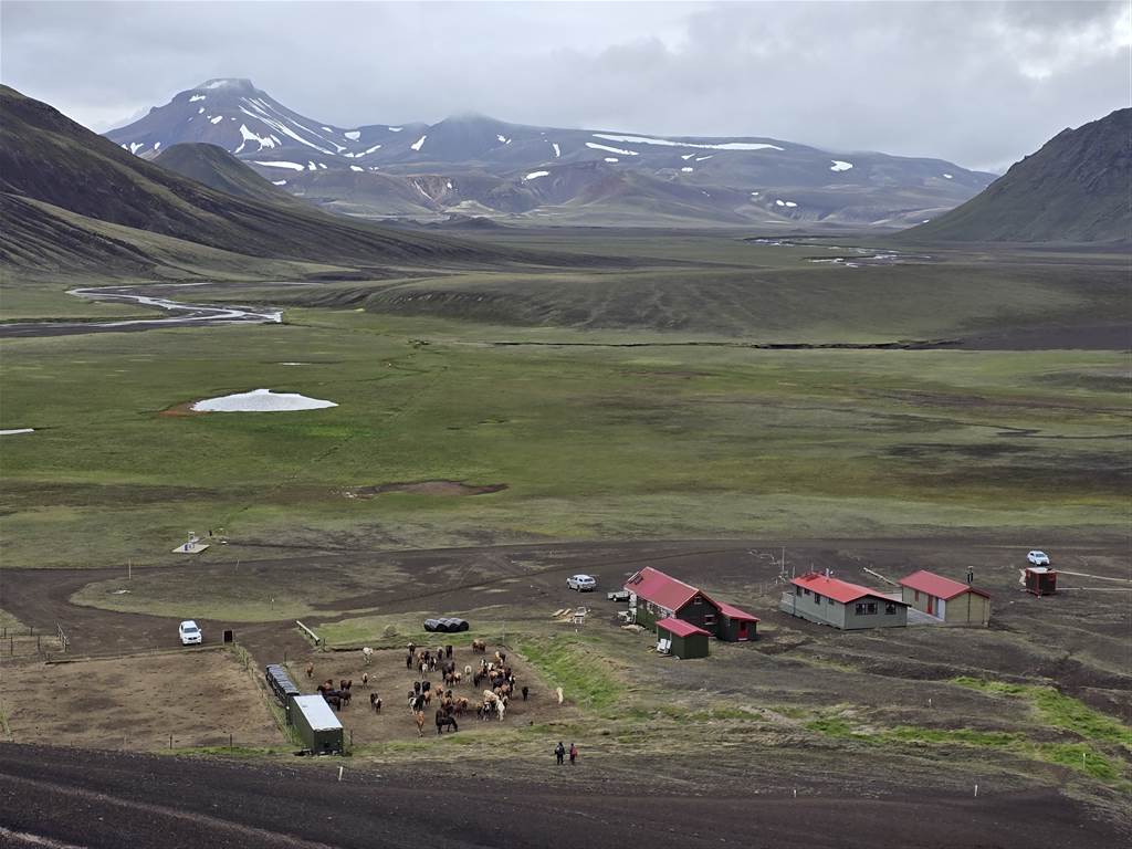 אנחנו חונים ליד בקתות ההרים של Landmannahellir.