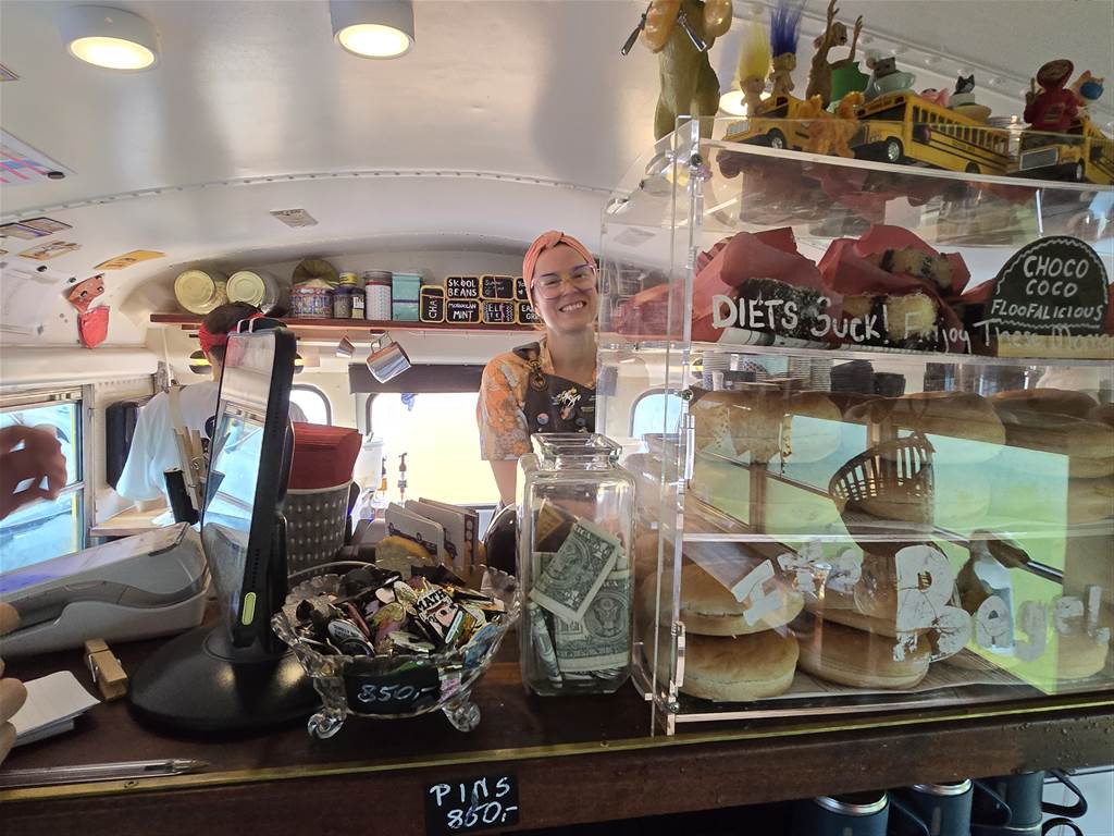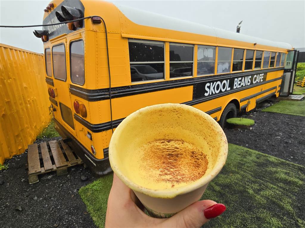 בתור התחלה נתעודד בבית קפה מיוחד Skool Beans השוכן בתוך School Bus אמריקאי מגניב.