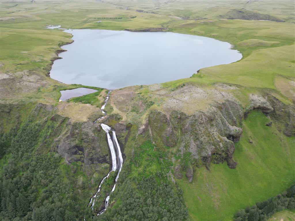 והנה תמונת רחפן בה אפשר לראות בקלות גם את האגם וגם את מפל האחיות
