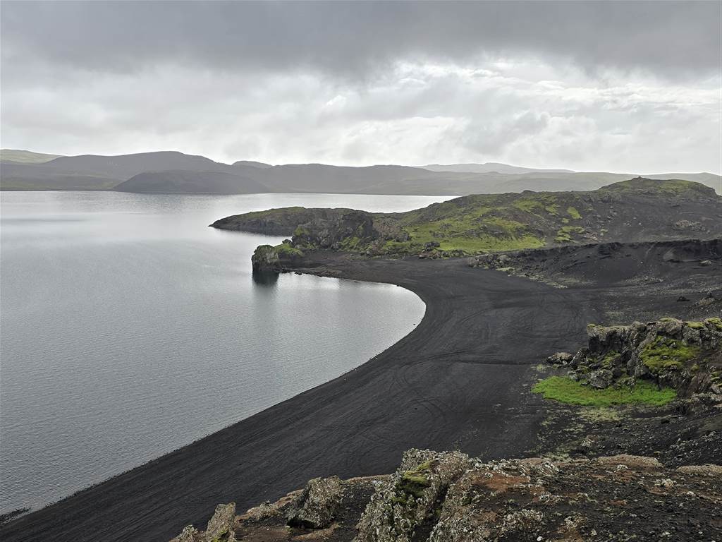 אנחנו מתחילים בתצפית על אגם Kleifarvatn ועל החוף השחור שלו – כוונו ל Indjánahöfði