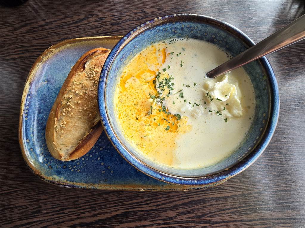 המסעדה צופה לנוף ולשני המגדלורים שיש במקום, ארוחה אחרונה באיסלנד וגם היא לא מאכזבת מרק דגים אחרון ודי
