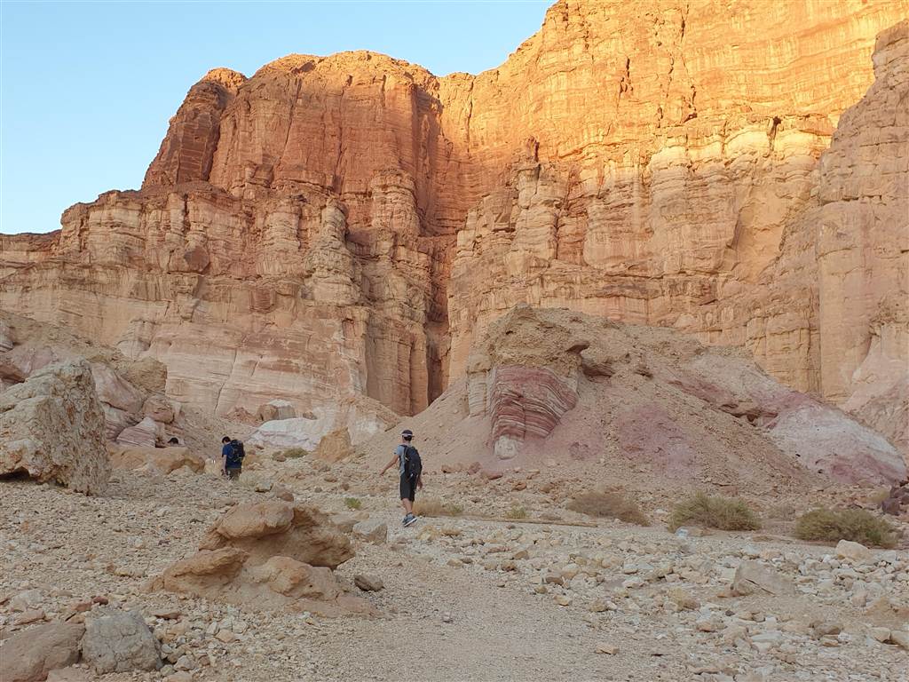 השמש תיכף תשקע, מדריכה של קבוצת מטיילים שעוברת לידינו אומרת שאפשר להצטרף אליהם ולהגיע לחניון אחר מאשר זה שבו השארנו את הרכב, חניון עמודי עמרם.