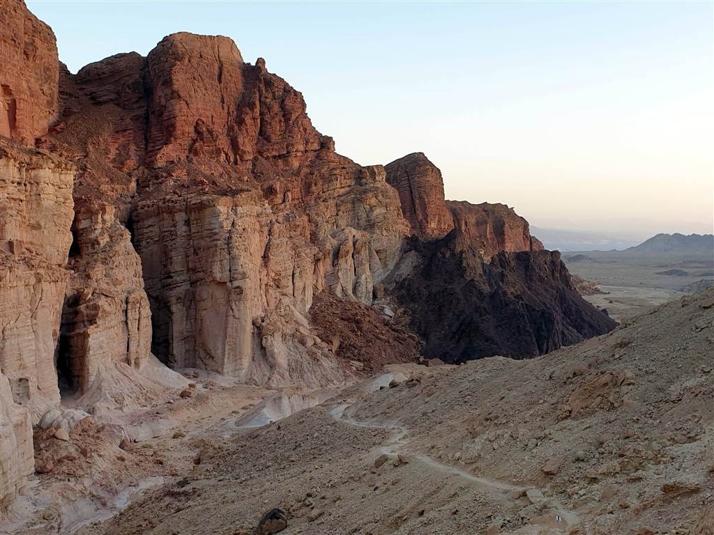הייתי שמחה לעשות את המסלול הארוך של הקניון האדום, אבל הוא סגור, ואנחנו מטיילים במסלול הקצר והמוכר, כמעט לבדנו… כנראה שבכל זאת השעה מוקדמת יחסית לתיירים באילת, בהמשך קיבלתי דיווחים על עומסים במסלול שהוא לדעתי הפופולרי ביותר באיזור כך שמומלץ להקדים.