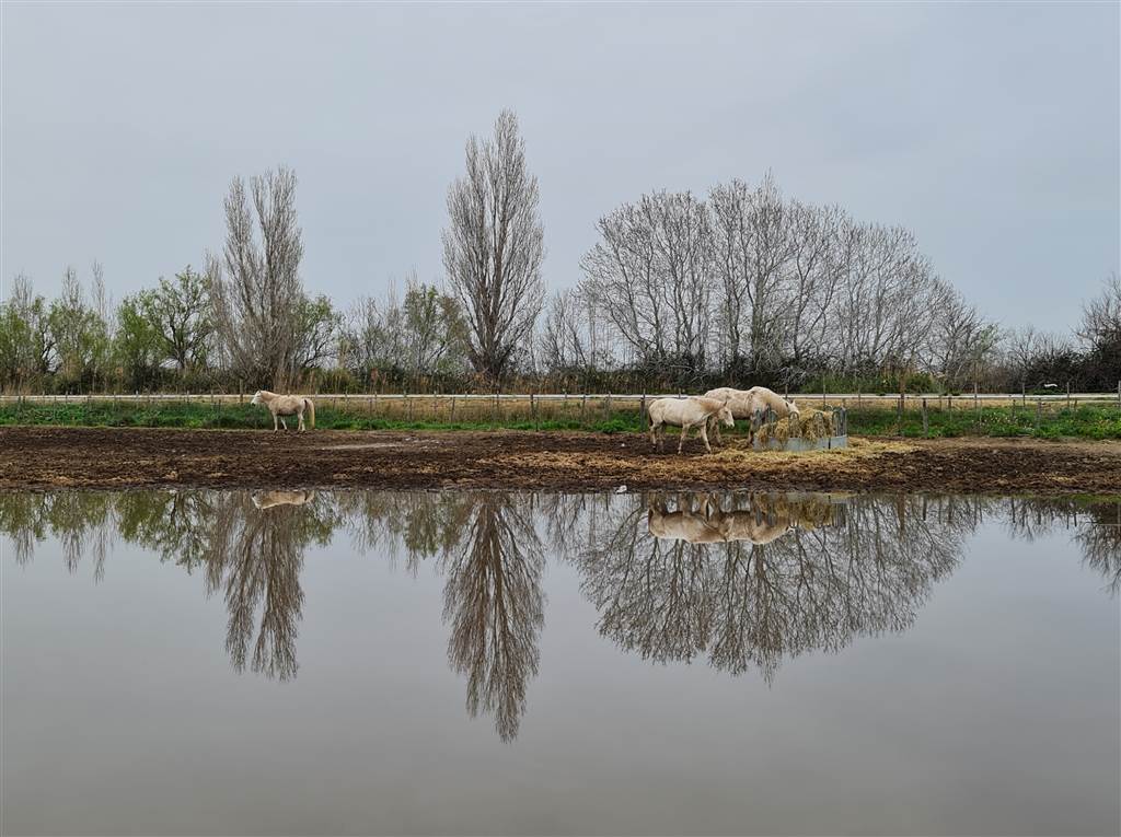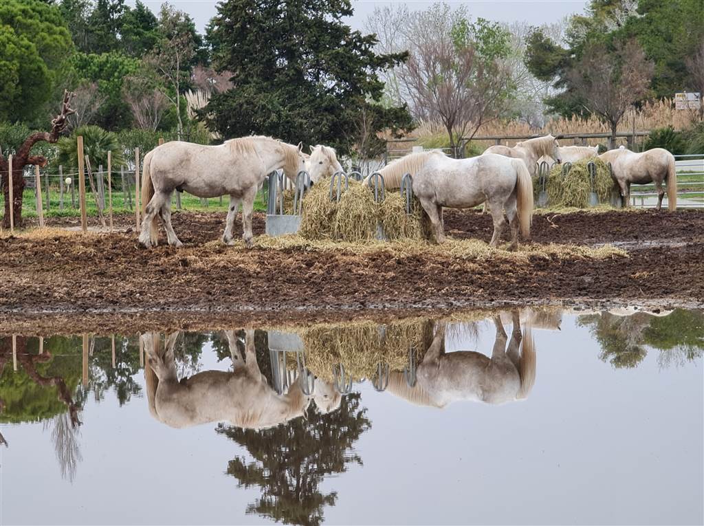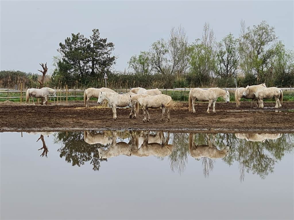 ממש בצומת שלפניו, ראיתי עדר סוסים לבנים, עומדים ליד בריכת מים עומדים גדולה.. אני משערת שפה צולמו התמונות המרשימות של סוסים שואטים במים, תמונות שמופיעות בכמה בלוגים ואתרים.