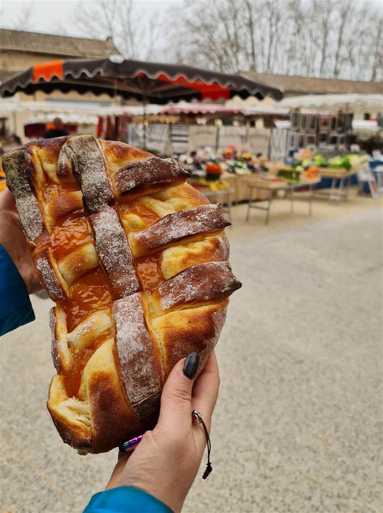 גם לפה באנו מוכנים לארוחת בוקר, וקסמה לנו עגלה בשוק שהיה רשום עליה “la tarto dou Leberoun”