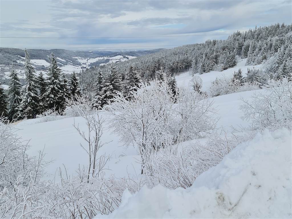 לאט לאט עולים בגובה, והנוף משתנה… עוד ועוד שלג בצידי הדרכים.