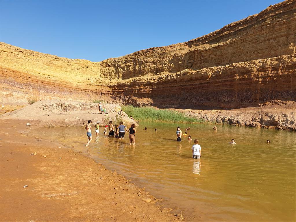 לטובת מי שלא מכיר אציין כי האטרקציה במקום היא גם "הים של מצפה" בו ניתן לרחוץ בדומה למחצבה בפארק צבעי רמון. פה היה יותר עמוס, הרבה יותר עמוס, כנראה כי המקום יותר ותיק וידוע וגם אולי השעה שהתקדמה תרמה לכך.