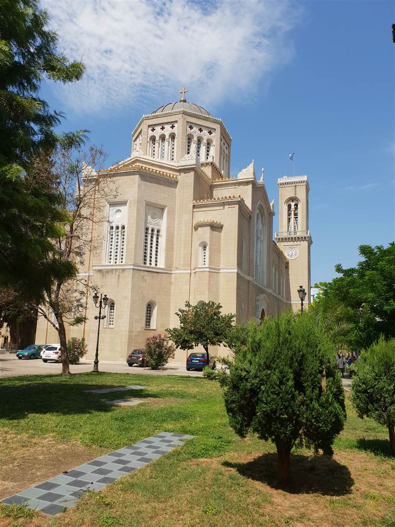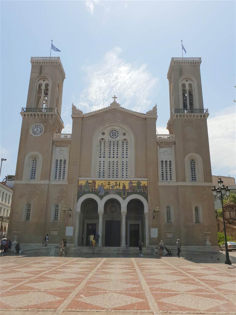קתדרלה יפה שנבנתה משיירי כנסיות ביזנטיות והיום מתקיימים בה הטקסים החשובים של יוון.