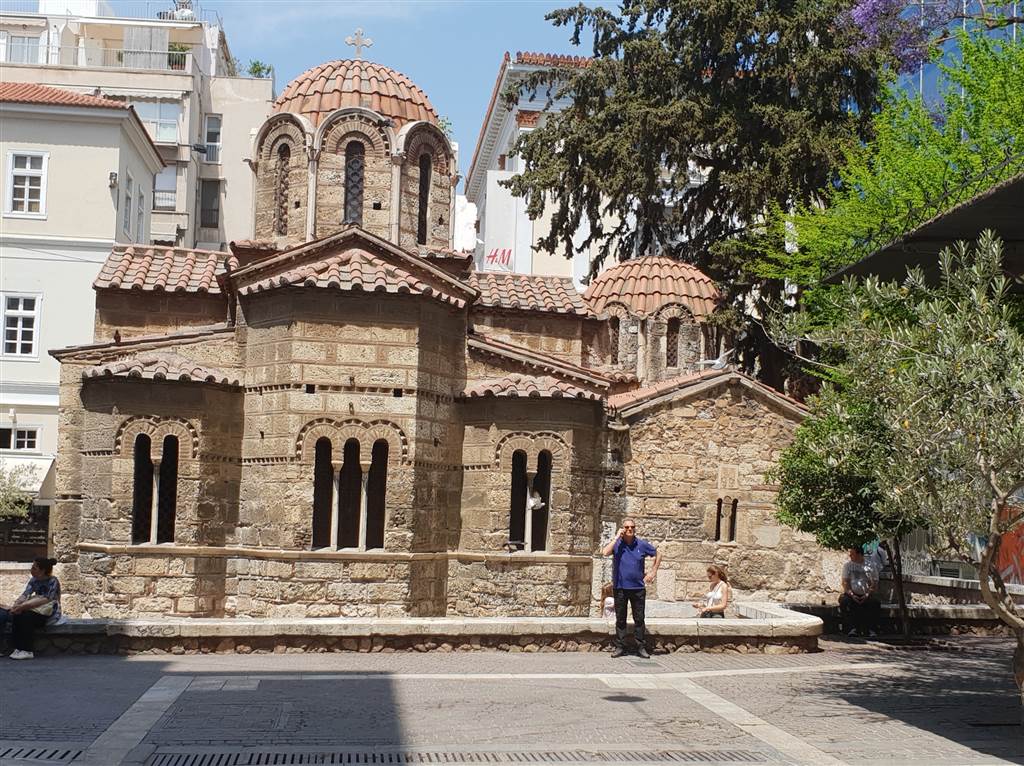 עוד כמה דקות הליכה דרך מדרחוב Ermou (מדרחוב מלא חנויות דרך אגב, אבל הן סגורות בראשון) ואנחנו חולפים על פני כנסיה נוספת, עתיקה הרבה יותר, כנסיה ביזנטית מהמאה ה-11