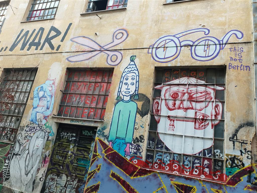 אתונה עשירה מאוד בציורי גרפיטי, גם בזן המקושקש אבל גם בציורי קיר מרהיבים, בחלקם פוליטיים, שהיום יותר ראוי אולי לקרוא להם אומנות רחוב אבל אני אמשיך להשתמש במונח גרפיטי.