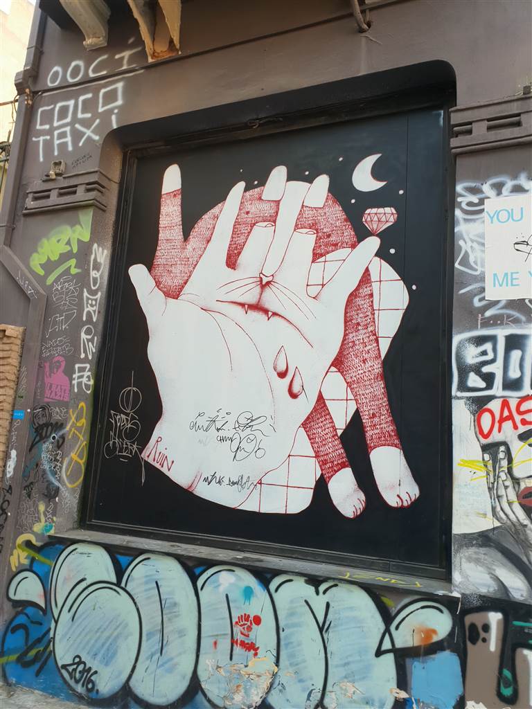 אנחנו פונים לרחוב החוצה – רחוב Sarri, פה יש עושר מדהים של גרפיטי, רובם לא הופיעו במפות כלל.