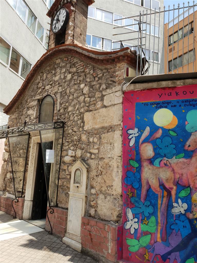 כנסיה לצד גרפיטי…. (זו אתונה או לא?? הכנסיה נמצאת סמוך לבית מס 30 ברחוב Athinas)