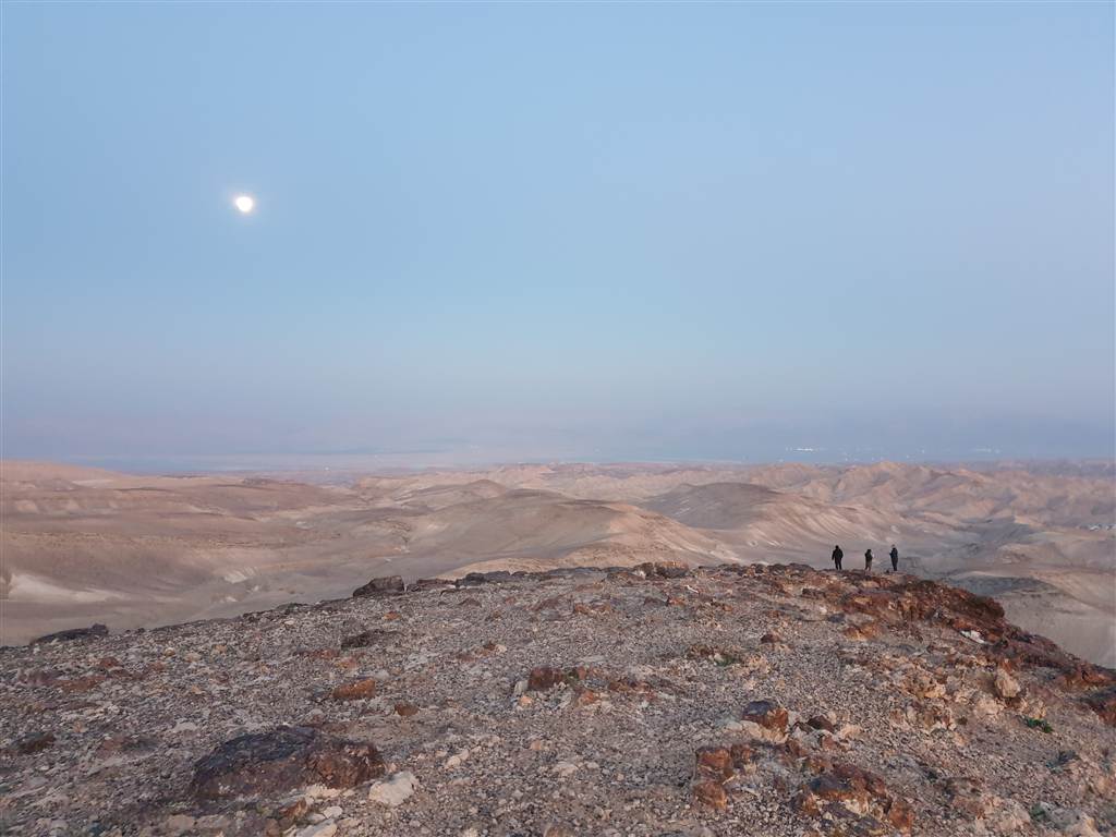 ברקע- הירח כבר עולה וצבעי השקיעה מהממים.