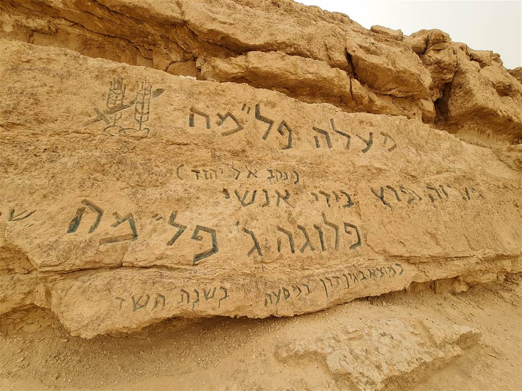 בסופה של העלייה מגיעים לכתובת חצובה באבן לכבודה של פלוגה ג' ומשם לתצפית על המכתש.