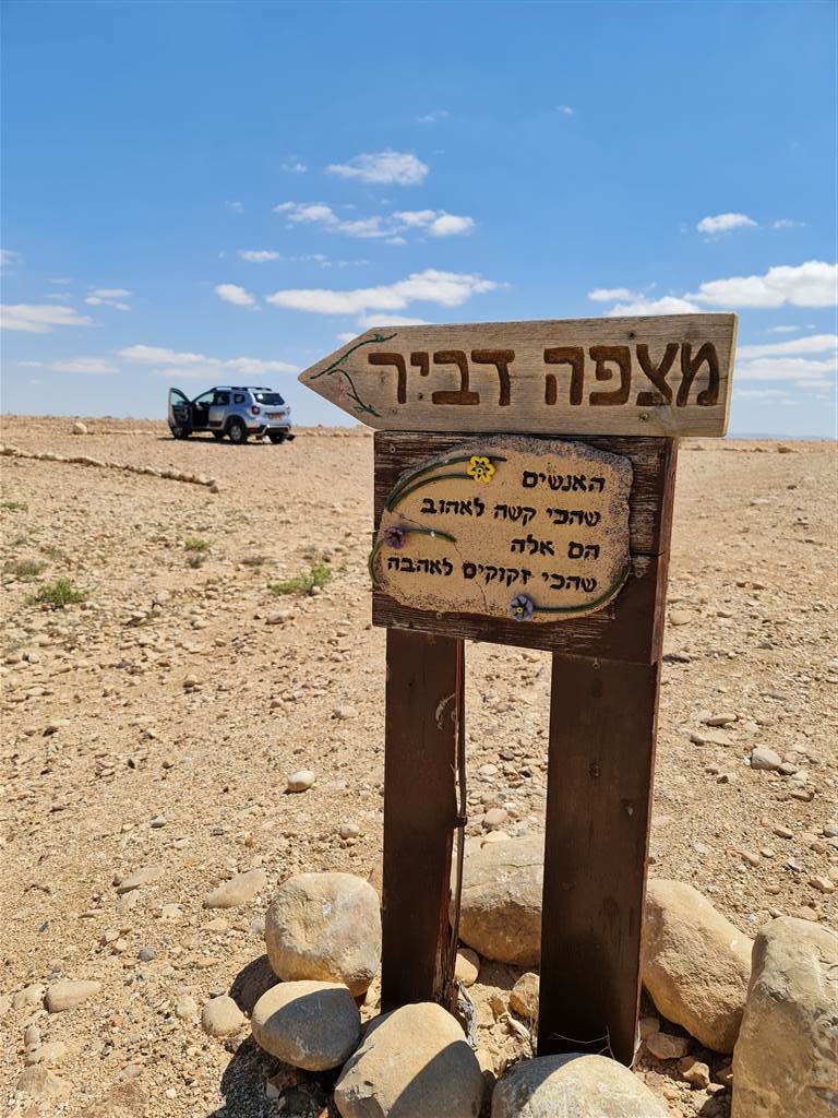 מקום לאכול בכל האיזור בשבת הזו לא נמצא, ועל כן הגיע הזמן לנישנוש במצפה דביר, שהוקם לזכרו של דביר מור ז"ל. הכביש המוביל למצפה כמו גם סוכת התמרים עצמה בה ניתן לשבת מעוטרים כולם באמרות של דביר, ואפשר ממש להרגיש את היד האוהבת של מי שבחר להנציח אותו כך.