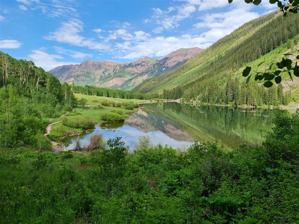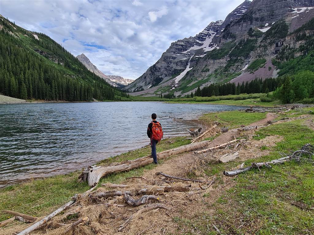 אנחנו ממשיכים עוד קצת, עד לפיצול בין המסלול סביב האגם שנקרא Maroon Bells Scenic Loop Trail, לבין המסלול שבו רצינו לטייל – עלייה ל Crater lake (6 ק"מ, 220 מ' שינוי גובה).