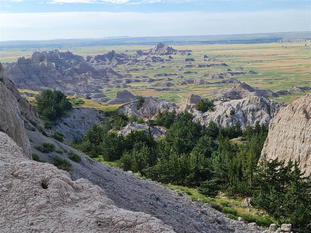התצפית שלנו Big Badlands Overlook – בכלל סגורה לעבודות אספלט, תיפתח בהמשך היום.
