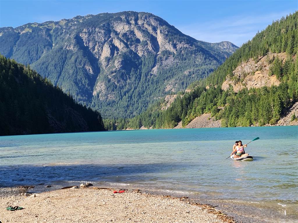 וכן זה אפשרי בקלות, ליד תחילת המסלול Thunder knob trail (שממנו דרך אגב אפשר לעלות לתצפית אחרת על אגם דיאבלו), יש קמפינג עם חוף שאפשר להיכנס אליו.