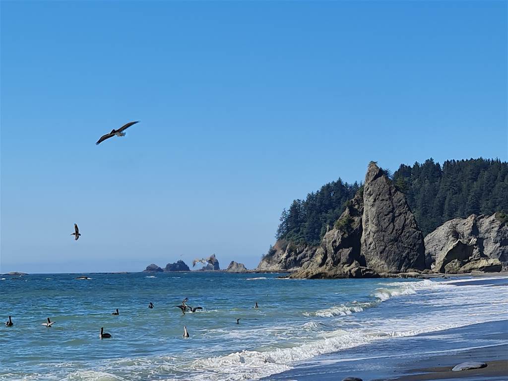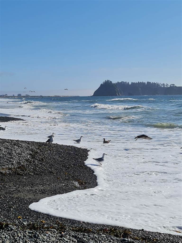 אני מחליטה לנסוע לבדוק את אחד מחופי La push. אלה חופים השייכים לשבט Quileute שפתח את שעריהם לראשונה בתקופת הקורונה כחודש לפני הנסיעה שלנו. החופים בעלי שמות מקוריים ביותר : First beach, second beach, first beach. לחוף השני נדרשת הליכה קלה של 15 דקות, לחוף השלישי מדובר בהליכה של 3.6 מייל, ואילו לחוף הראשון לא נדרשת הליכה כלל ולכן הוא התאים לנו כעת.