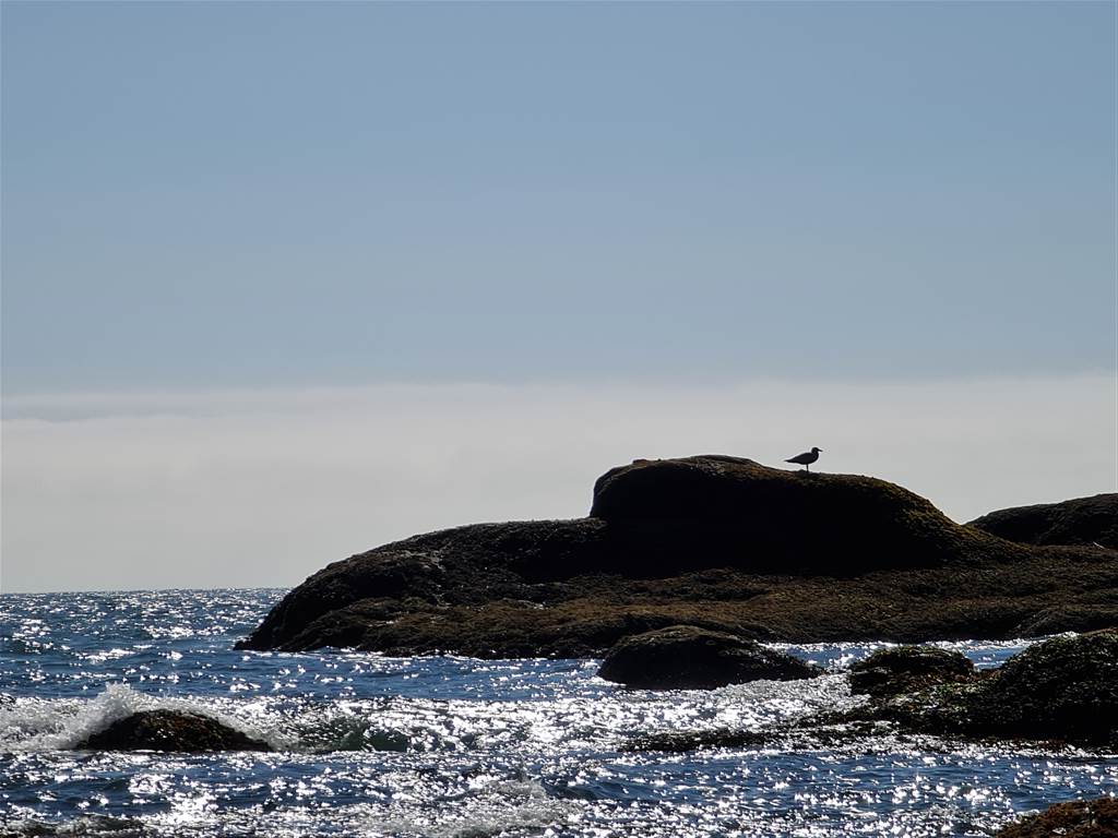 הקפנו את הסלע לצידו השני, הפתוח לחלוטין למרחבי האוקיינוס, וישבנו לנוח.