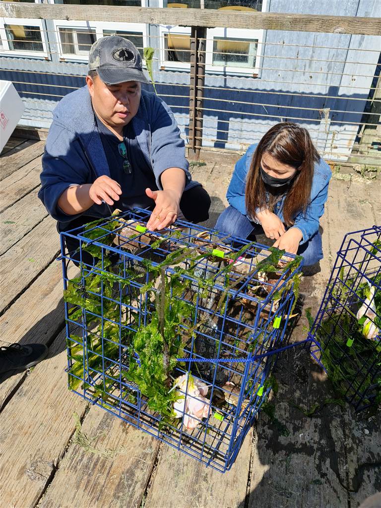 הנה הדייג , נראה לי שזו הבת שלו לידו. לידם הכלוב בו נלכדים הסרטנים.