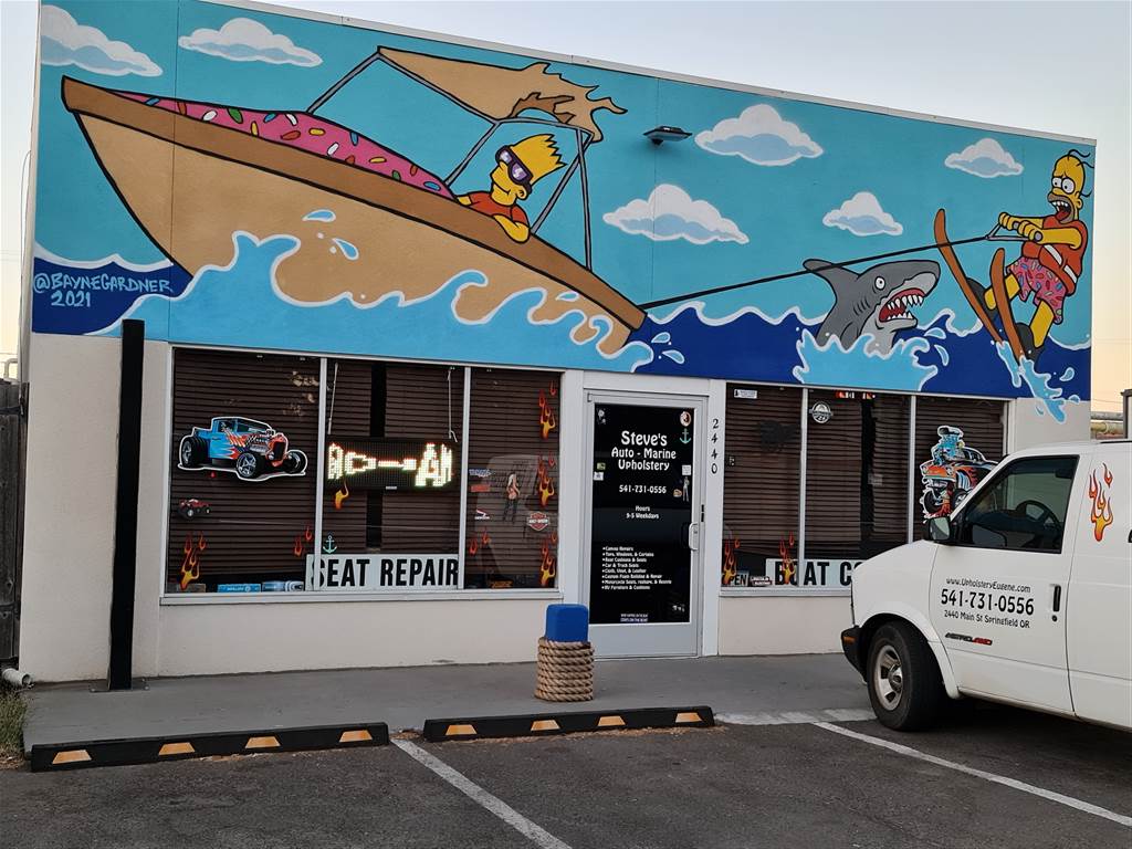 עוד עסק שמצאנו שמתהדר בציור סימפסונס הוא עסק לתיקון סירות ורכבים, עם ציור תואם