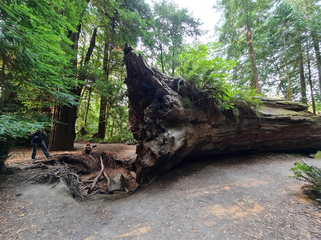 וככה זה נראה כשעץ נופל, תראו גם באיזה קוטר מדובר.. למרות שעצי הרדווד ידועים בעיקר בגובהם ופחות בקוטרם בהשוואה לסקויה