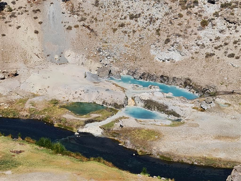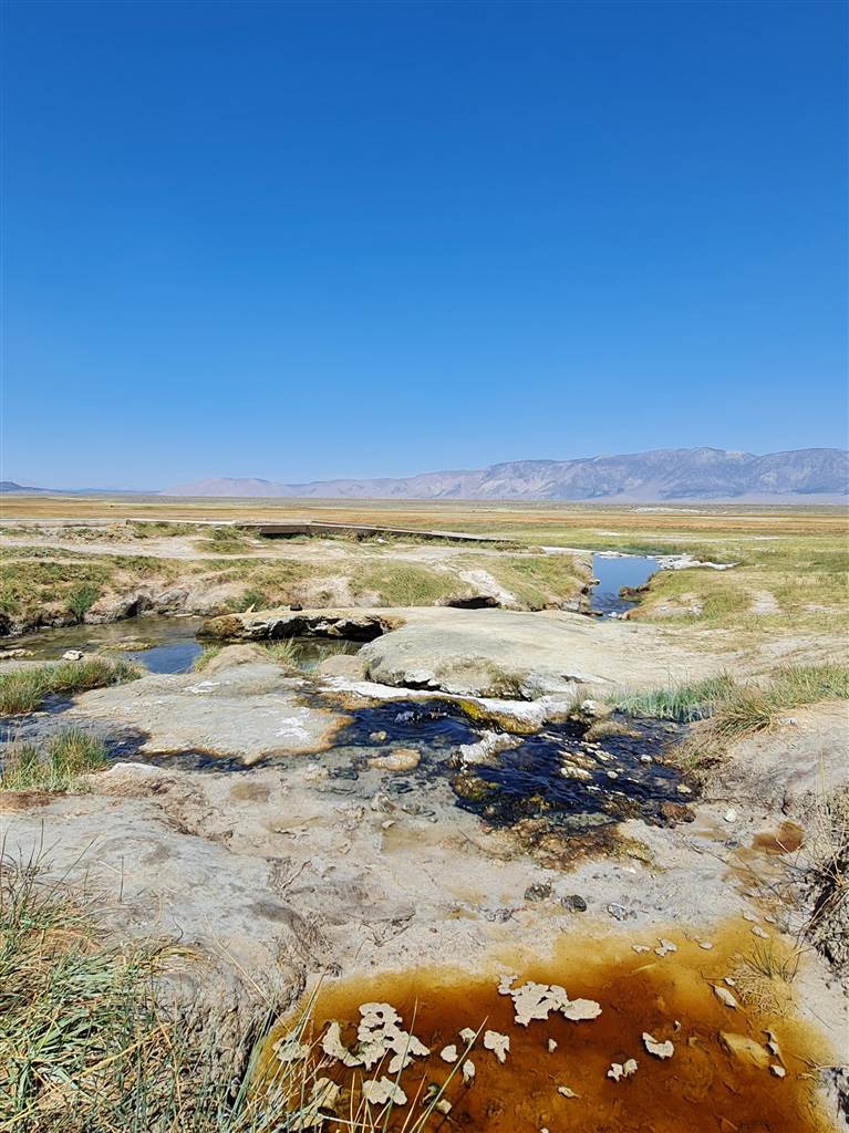 האתר הראשון הוא Hot Creek Geological Site בו ניתן לטייל לבריכות רותחות ותכולות, אסור להיכנס אליהן או לנהר שלידן (וחבל, כניסה לנהר הייתה מותרת בעבר) אבל יפה לראות.