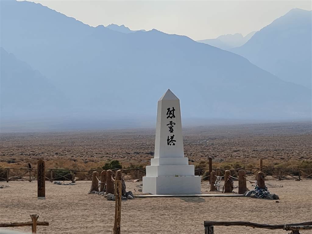אנחנו ממשיכים דרומה, ולמרות הדרך הארוכה שעוד לפנינו, לאחר עוד שעת נסיעה אני לא מוותרת על עצירה באתר ההיסטורי Manzanar